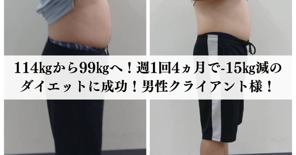 114㎏から99㎏へ!週1回4ヵ月で-15㎏減のダイエットに成功!男性クライアント様!