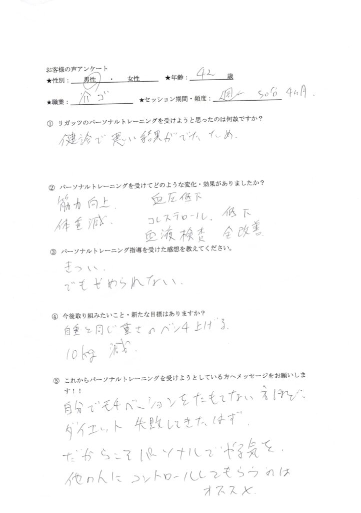 リガッツのパーソナルトレーニングを受けようと思ったのは何故ですか?